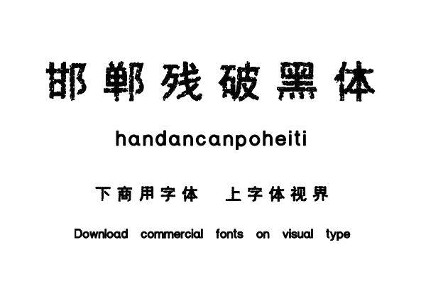 字体视界™是正版商用字体授权平台,平台已取得「邯郸残破黑体」字体的官方授权,并有权为您提供字体授权服务。除了「邯郸残破黑体」字体以外字体视界™还提供邯郸字库其他......单字授权