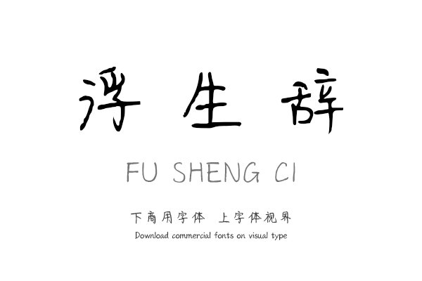 字体视界是一家专业字体授权平台,平台已取得「浮生辞」字体的官方代理授权,并有权为您提供字体授权服务。除了「浮生辞」字体以外字体视界还提供文道字库其他字体供您选择......单字授权