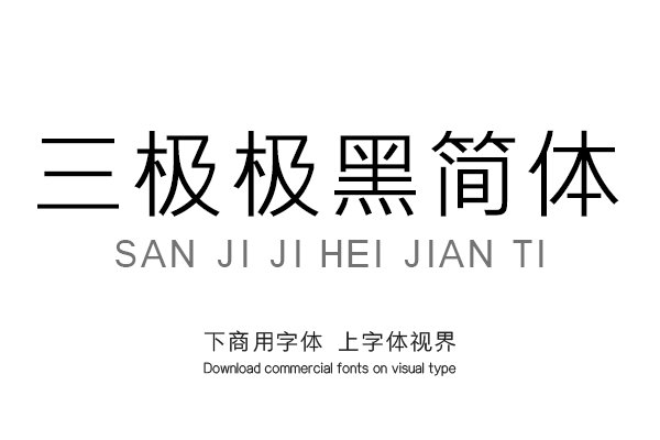 三极极黑简体是一款家族字体,字形清新,结构严谨,布白均匀,中宫偏大,重心一致。适当缩小字面大小、加大默认字距、增强了字体的识别性,使得版面更加通透明了。字形更加......购买须知:“下载服务费”与“字体VIP”所获得字体 仅用于个人非商用, 商用请联系付费授权。本字体为电脑用字,手机没有root权限不支持直接手机换字(手机如何root,请自行百度搜索教程)。购买前请先 了解清楚后再付款 ,字体为虚拟产品无法回收 一旦购买不支持退款。