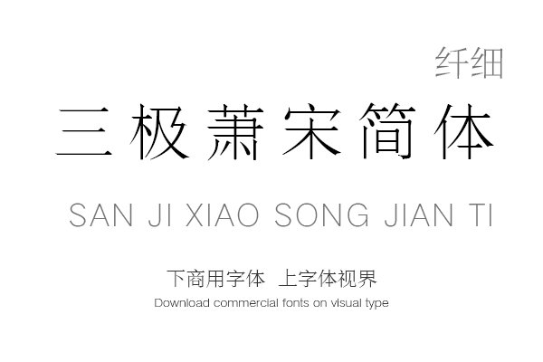 字体视界是一家专业字体授权平台,平台已取得「三极萧宋简体 纤细」字体的官方代理授权,并有权为您提供字体授权服务。除了「三极萧宋简体 纤细」字体以外字体视界还提供......购买须知:“下载服务费”与“字体VIP”所获得字体 仅用于个人非商用, 商用请联系付费授权。本字体为电脑用字,手机没有root权限不支持直接手机换字(手机如何root,请自行百度搜索教程)。购买前请先 了解清楚后再付款 ,字体为虚拟产品无法回收 一旦购买不支持退款。