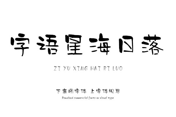 字语星海月落用笔沉着痛快,笔画细粗有变,字体看起来生动有趣、形象呆萌、字体可塑性高。适用于儿童、女性消费品、餐饮类品牌、包装、综艺节目字幕、趣味营销活动类等。单字授权