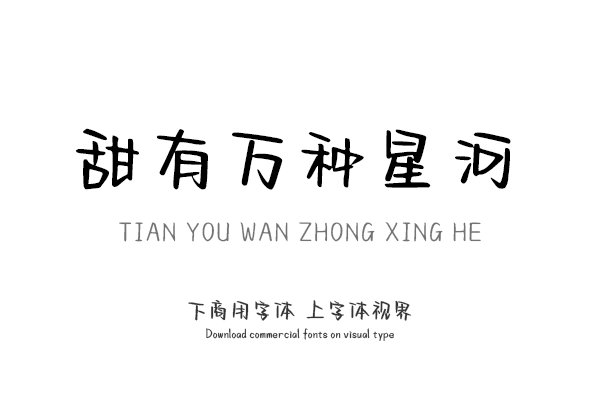 字体视界是一家专业字体授权平台,平台已取得「甜有万种星河」字体的官方代理授权,并有权为您提供字体授权服务。除了「甜有万种星河」字体以外字体视界还提供字语坊其他字......单字授权