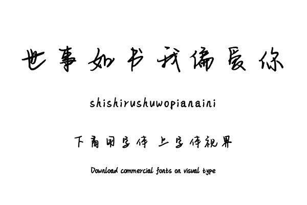 字体视界™是正版商用字体授权平台,平台已取得「世事如书我偏爱你」字体的官方授权,并有权为您提供字体授权服务。除了「世事如书我偏爱你」字体以外字体视界™还提供文道......单字授权