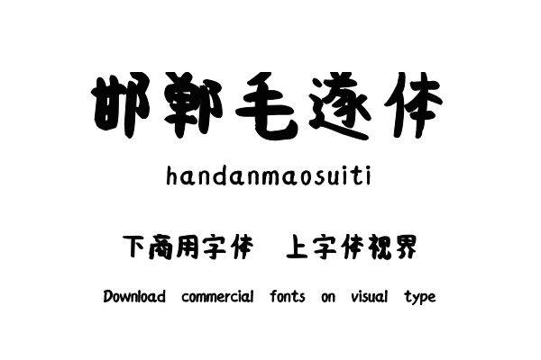 字体视界™是正版商用字体授权平台,平台已取得「邯郸毛遂体」字体的官方授权,并有权为您提供字体授权服务。除了「邯郸毛遂体」字体以外字体视界™还提供邯郸字库其他字体......单字授权