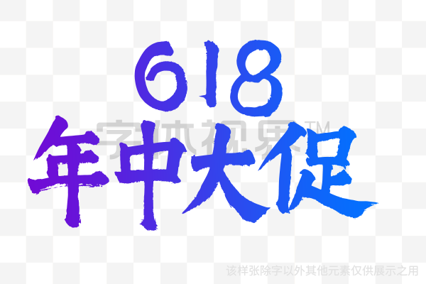 618年中大促字体素材毛笔书法作品。字体素材单元是字体视界推出的素材内容,提供海量素材下载。即日起开通字体视界会员,即可字体素材商用。格式为:svg格式,矢量原......源文件下载