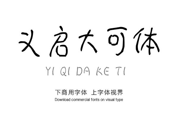 义启大可体来自于【义启字库】微信公众号粉丝大可的呕心力作。这是一款极具个人特色的手写体,也是粉丝在义启字库定制的第一款手写体。单字授权