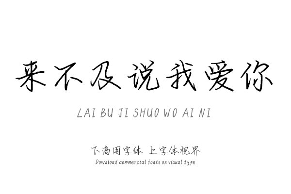 字体视界是一家专业字体授权平台,平台已取得「来不及说我爱你」字体的官方代理授权,并有权为您提供字体授权服务。除了「来不及说我爱你」字体以外字体视界还提供字语坊其......单字授权