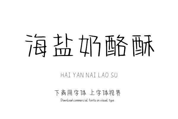 字体视界是一家专业字体授权平台,平台已取得「海盐奶酪酥」字体的官方代理授权,并有权为您提供字体授权服务。除了「海盐奶酪酥体」字体以外字体视界还提供字语坊其他字......单字授权