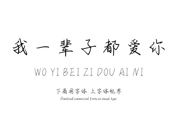 字体视界是一家专业字体授权平台,平台已取得「我一辈子都爱你」字体的官方代理授权,并有权为您提供字体授权服务。除了「我一辈子都爱你」字体以外字体视界还提供字语坊其......单字授权
