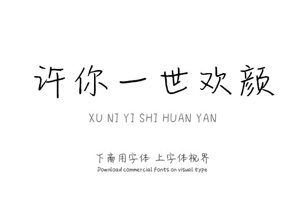 字体视界是一家专业字体授权平台,平台已取得「许你一世欢颜」字体的官方代理授权,并有权为您提供字体授权服务。除了「许你一世欢颜」字体以外字体视界还提供字语坊其他字......单字授权