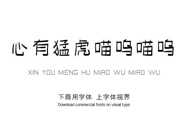 字体视界是一家专业字体授权平台,平台已取得「心有猛虎喵呜喵呜」字体的官方代理授权,并有权为您提供字体授权服务。除了「心有猛虎喵呜喵呜」字体以外字体视界还提供文道......单字授权
