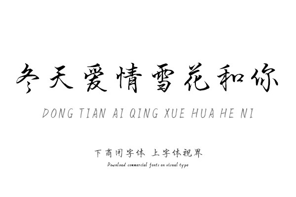 字体视界是一家专业字体授权平台,平台已取得「冬天爱情雪花和你」字体的官方代理授权,并有权为您提供字体授权服务。除了「冬天爱情雪花和你」字体以外字体视界还提供字语......单字授权