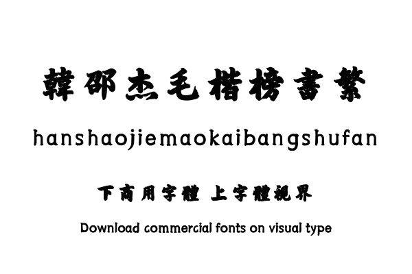 字体视界™是正版商用字体授权平台,平台已取得「韩邵杰毛楷榜书繁」字体的官方授权,并有权为您提供字体授权服务。除了「韩邵杰毛楷榜书繁」字体以外字体视界™还提供邯郸......单字授权