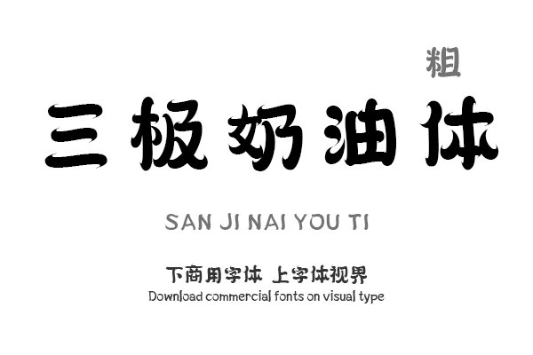 字体视界是一家专业字体授权平台,平台已取得「三极奶油体 粗」字体的官方代理授权,并有权为您提供字体授权服务。除了「三极奶油体 粗」字体以外字体视界还提供三极字库......购买须知:“下载服务费”与“字体VIP”所获得字体 仅用于个人非商用, 商用请联系付费授权。本字体为电脑用字,手机没有root权限不支持直接手机换字(手机如何root,请自行百度搜索教程)。购买前请先 了解清楚后再付款 ,字体为虚拟产品无法回收 一旦购买不支持退款。