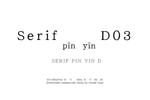 《Serif拼音D03》此字库为《Serif拼音D》的子集字库(ttf格式)。需要下载完整字体,请点击这里前往《Serif拼音D》下载完整的字库集(“TTC”格式)。《Serif拼音D》一套完成的字库集包含了6款不同拼音的字库(分别为:《Serif拼音D01》、《Serif拼音D02》、《Serif拼音D03》、《Serif拼音D04》、《Serif拼音D05》、《Serif拼音D06》详见上方列表),每个子字库集的特征如下: