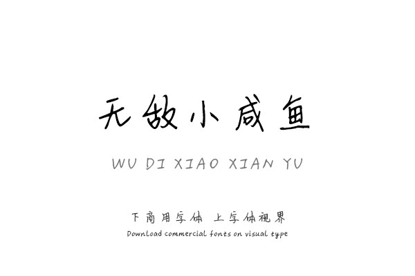 无敌小咸鱼这款字体笔触快意连贯,字形洒脱不羁,朝气蓬勃。适用于文艺类的书刊、品牌广告和产品包装设计,综艺影视用字,以及社交网络的个性化用字。单字授权