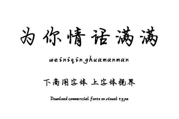 字体视界™是正版商用字体授权平台,平台已取得「为你情话满满」字体的官方授权,并有权为您提供字体授权服务。除了「为你情话满满」字体以外字体视界™还提供字语坊字库字......单字授权