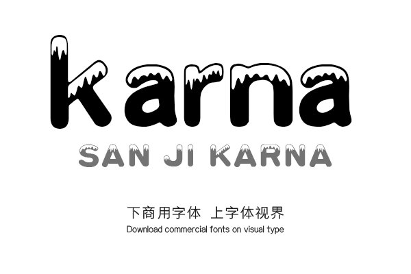 Karna字体为立体字,有积雪效果,黑白对比强烈。字形结构丰满。适用于广告,包装,报纸印刷,屏幕显示。购买须知:“下载服务费”与“字体VIP”所获得字体 仅用于个人非商用, 商用请联系付费授权。本字体为电脑用字,手机没有root权限不支持直接手机换字(手机如何root,请自行百度搜索教程)。购买前请先 了解清楚后再付款 ,字体为虚拟产品无法回收 一旦购买不支持退款。