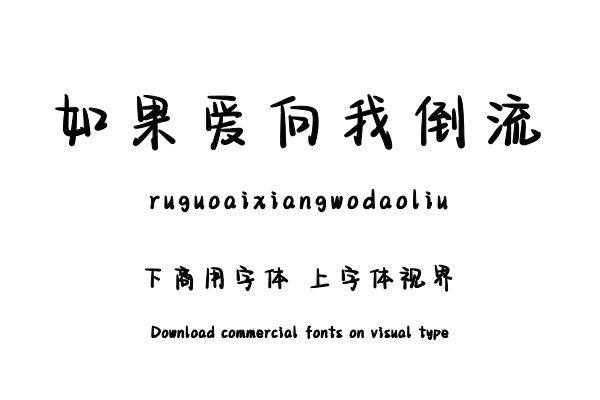 字体视界™是正版商用字体授权平台,平台已取得「如果爱向我倒流」字体的官方授权,并有权为您提供字体授权服务。除了「如果爱向我倒流」字体以外字体视界™还提供文道字库......单字授权