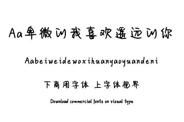 卑微的我喜欢遥远的你是一款手写体,书写灵活、笔画自然。字形优雅洒脱,是一款风格独特的手写字体。作为标题正文均可,适用场景广泛。购买须知:“下载服务费”与“字体VIP”所获得字体 仅用于个人非商用, 商用请联系付费授权。本字体为电脑用字,手机没有root权限不支持直接手机换字(手机如何root,请自行百度搜索教程)。购买前请先 了解清楚后再付款 ,字体为虚拟产品无法回收 一旦购买不支持退款。