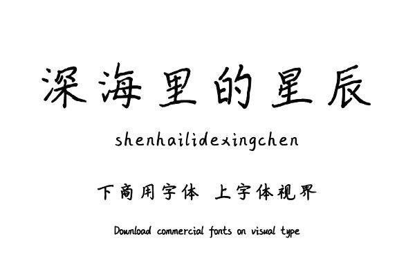 字体视界™是正版商用字体授权平台,平台已取得「深海里的星辰」字体的官方授权,并有权为您提供字体授权服务。除了「深海里的星辰」字体以外字体视界™还提供文道字库其他......单字授权