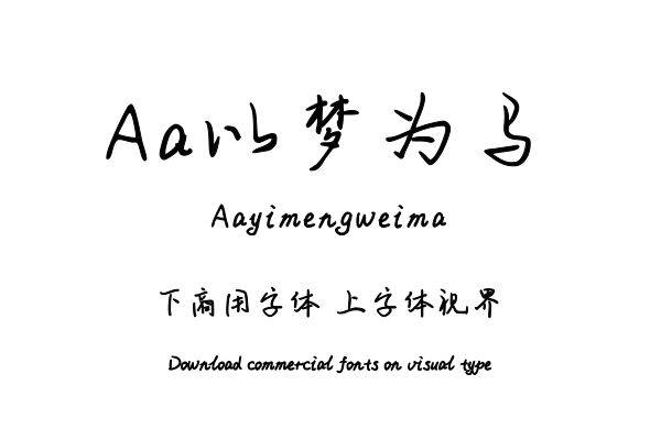 Aa以梦为马,其结构以行楷的体势为基础 ,笔势流畅灵动,连笔张弛有度,整体优雅洒脱,是一款风格独特的手写字体。作为标题正文均可,适用场景广泛。购买须知:“下载服务费”与“字体VIP”所获得字体 仅用于个人非商用, 商用请联系付费授权。本字体为电脑用字,手机没有root权限不支持直接手机换字(手机如何root,请自行百度搜索教程)。购买前请先 了解清楚后再付款 ,字体为虚拟产品无法回收 一旦购买不支持退款。
