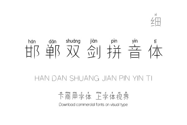 字体视界™是正版商用字体授权平台,平台已取得「邯郸双剑拼音细体」字体的官方授权,并有权为您提供字体授权服务。除了「邯郸双剑拼音细体」字体以外字体视界™还提供邯郸......单字授权