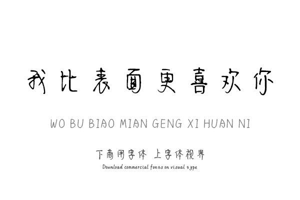 字体视界是一家专业字体授权平台,平台已取得「我比表面更喜欢你」字体的官方代理授权,并有权为您提供字体授权服务。除了「我比表面更喜欢你」字体以外字体视界还提供字语......单字授权