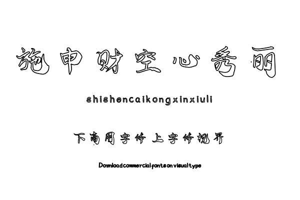 字体视界™是正版商用字体授权平台,平台已取得「施申财空心秀丽」字体的官方授权,并有权为您提供字体授权服务。除了「施申财空心秀丽」字体以外字体视界™还提供施申财字......单字授权