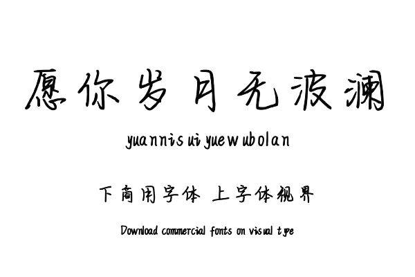 字体视界™是正版商用字体授权平台,平台已取得「愿你岁月无波澜」字体的官方授权,并有权为您提供字体授权服务。除了「愿你岁月无波澜」字体以外字体视界™还提供文道字库......单字授权