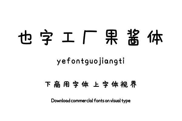 字体视界™是正版商用字体授权平台,平台已取得「也字工厂果酱体」字体的官方授权,并有权为您提供字体授权服务。除了「也字工厂果酱体」字体以外字体视界™还提供也字工厂......单字授权