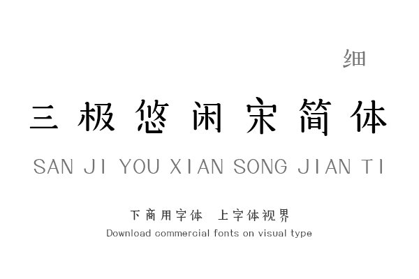 字体视界是一家专业字体授权平台,平台已取得「三极悠闲宋简体 细」字体的官方代理授权,并有权为您提供字体授权服务。除了「三极悠闲宋简体 细」字体以外字体视界还提供......购买须知:“下载服务费”与“字体VIP”所获得字体 仅用于个人非商用, 商用请联系付费授权。本字体为电脑用字,手机没有root权限不支持直接手机换字(手机如何root,请自行百度搜索教程)。购买前请先 了解清楚后再付款 ,字体为虚拟产品无法回收 一旦购买不支持退款。