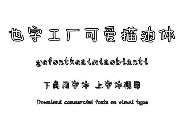 字体视界™是正版商用字体授权平台,平台已取得「也字工厂可爱描边体」字体的官方授权,并有权为您提供字体授权服务。除了「也字工厂可爱描边体」字体以外字体视界™还提供......单字授权