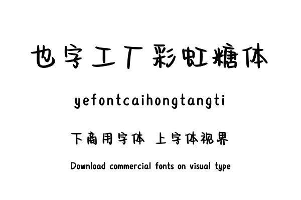字体视界™是正版商用字体授权平台,平台已取得「也字工厂彩虹糖体」字体的官方授权,并有权为您提供字体授权服务。除了「也字工厂彩虹糖体」字体以外字体视界™还提供也字......单字授权