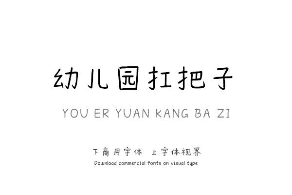 幼儿园杠把子这款字体有稚拙天真之趣,适用于低龄风格的广告和产品包装设计,以及社交网络的个性化用字。单字授权