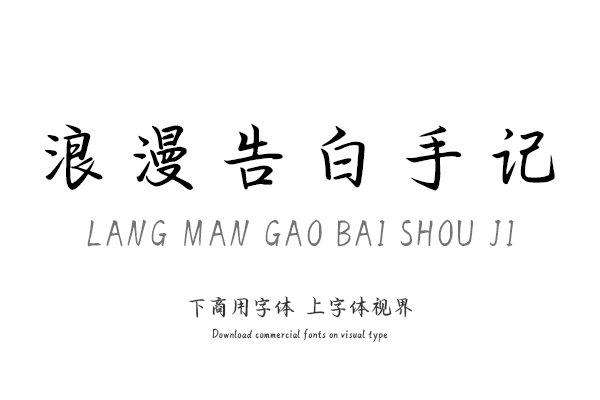 字体视界是一家专业字体授权平台,平台已取得「浪漫告白手记」字体的官方代理授权,并有权为您提供字体授权服务。除了「浪漫告白手记」字体以外字体视界还提供字语坊其他字......单字授权