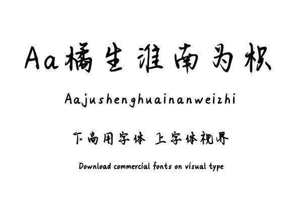 橘生淮南为枳是一款手写体,书写灵活、笔画自然。字形优雅洒脱,是一款风格独特的手写字体。作为标题正文均可,适用场景广泛。购买须知:“下载服务费”与“字体VIP”所获得字体 仅用于个人非商用, 商用请联系付费授权。本字体为电脑用字,手机没有root权限不支持直接手机换字(手机如何root,请自行百度搜索教程)。购买前请先 了解清楚后再付款 ,字体为虚拟产品无法回收 一旦购买不支持退款。