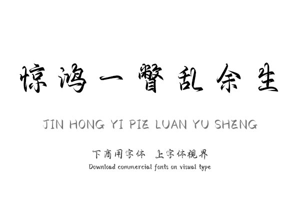 字体视界是一家专业字体授权平台,平台已取得「惊鸿一瞥乱余生」字体的官方代理授权,并有权为您提供字体授权服务。除了「惊鸿一瞥乱余生」字体以外字体视界还提供文道字库......单字授权