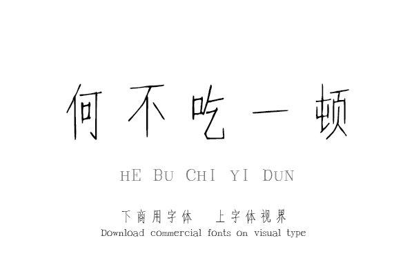 字体视界是一家专业字体授权平台,平台已取得「何不吃一顿」字体的官方代理授权,并有权为您提供字体授权服务。除了「何不吃一顿」字体以外字体视界还提供三极字库其他字体......购买须知:“下载服务费”与“字体VIP”所获得字体 仅用于个人非商用, 商用请联系付费授权。本字体为电脑用字,手机没有root权限不支持直接手机换字(手机如何root,请自行百度搜索教程)。购买前请先 了解清楚后再付款 ,字体为虚拟产品无法回收 一旦购买不支持退款。