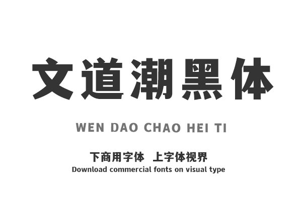 文道潮黑体为免费商用字体,该字体具有典雅的气质,非常有潮流感的风格化黑体作品。兼具了黑体的简洁和宋体的雅致特征。 整体字形方正,刚柔相济,优雅大方。