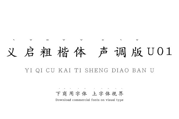 《义启粗楷体 声调版U01》此字库为《义启粗楷体 拼音版U》的子集字库(ttf格式)。需要下载完整字体,请点击这里前往《义启粗楷体 声调版U》下载完整的字库集(“TTC”格式)。《义启粗楷体 声调版U》一套完成的字库集包含了6款不同拼音的字库(分别为:《义启粗楷体 声调版U01》、《义启粗楷体 声调版U02》、《义启粗楷体 声调版U03》、《义启粗楷体 声调版U04》、《义启粗楷体 声调版U05》、《义启粗楷体 声调版U06》详见上方列表),每个子字库集的特征如下: