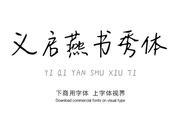义启燕书秀体,是义启字库定制的第五款个人手写体,想在自己的手机上使用自己写的字吗,快来关注义启字库的微信公众号,选择定制字体进行投稿吧,说不定下一款手写体就是你......单字授权
