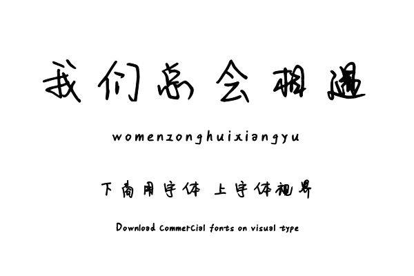 字体视界™是正版商用字体授权平台,平台已取得「我们总会相遇」字体的官方授权,并有权为您提供字体授权服务。除了「我们总会相遇」字体以外字体视界™还提供施申财字库其......单字授权