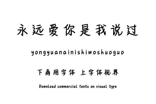 字体视界™是正版商用字体授权平台,平台已取得「永远爱你是我说过」字体的官方授权,并有权为您提供字体授权服务。除了「永远爱你是我说过」字体以外字体视界™还提供文道......单字授权
