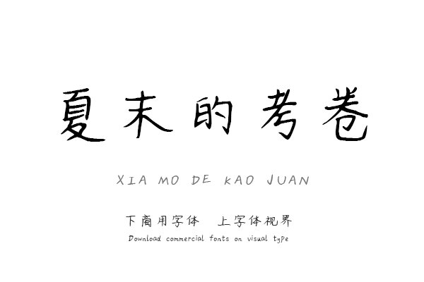 字体视界是一家专业字体授权平台,平台已取得「夏末的考卷」字体的官方代理授权,并有权为您提供字体授权服务。除了「夏末的考卷」字体以外字体视界还提供三极字库其他字......购买须知:“下载服务费”与“字体VIP”所获得字体 仅用于个人非商用, 商用请联系付费授权。本字体为电脑用字,手机没有root权限不支持直接手机换字(手机如何root,请自行百度搜索教程)。购买前请先 了解清楚后再付款 ,字体为虚拟产品无法回收 一旦购买不支持退款。