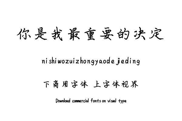 字体视界是一家专业字体授权平台,平台已取得「你是我最重要的决定」字体的官方代理授权,并有权为您提供字体授权服务。除了「你是我最重要的决定」字体以外字体视界还提供......单字授权