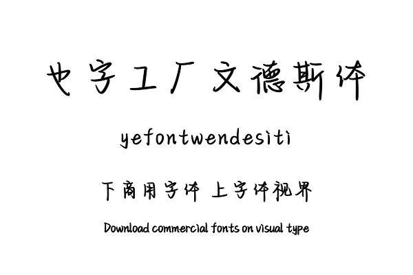 字体视界™是正版商用字体授权平台,平台已取得「也字工厂文德斯体」字体的官方授权,并有权为您提供字体授权服务。除了「也字工厂文德斯体」字体以外字体视界™还提供也字......单字授权