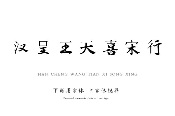 字体视界是一家专业字体授权平台,平台已取得「汉呈王天喜宋行字体」字体的官方代理授权,并有权为您提供字体授权服务。除了「汉呈王天喜宋行字体」字体以外字体视界还提......单字授权
