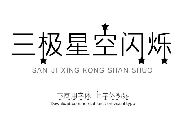 字体视界是一家专业字体授权平台,平台已取得「三极星空闪烁」字体的官方代理授权,并有权为您提供字体授权服务。除了「三极星空闪烁」字体以外字体视界还提供三极字库其他......购买须知:“下载服务费”与“字体VIP”所获得字体 仅用于个人非商用, 商用请联系付费授权。本字体为电脑用字,手机没有root权限不支持直接手机换字(手机如何root,请自行百度搜索教程)。购买前请先 了解清楚后再付款 ,字体为虚拟产品无法回收 一旦购买不支持退款。