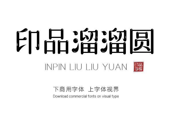 印品溜溜圆,整体圆润饱满,笔画较粗狂,字体内部空间较小,笔画末端做圆弧状处理,朴拙中不失灵动,具有极强的时尚感。字体笔触粗狂厚重,雄阔严整,笔画起承顿挫,飘逸流畅,朴拙中不失灵动;重心一致,结构规整,重心稳定,曲线分明充满张力,整体略显厚重。字体笔划粗壮有力,撇捺等笔画不尖,笔画末端做圆弧状处理,细腻出彩的笔画特点让字形整体更加刚毅,充满力量。圆圆惹人爱,愿得你喜欢。印品溜溜圆适用于LOGO、广告、包装印刷、动漫、影视等场景。